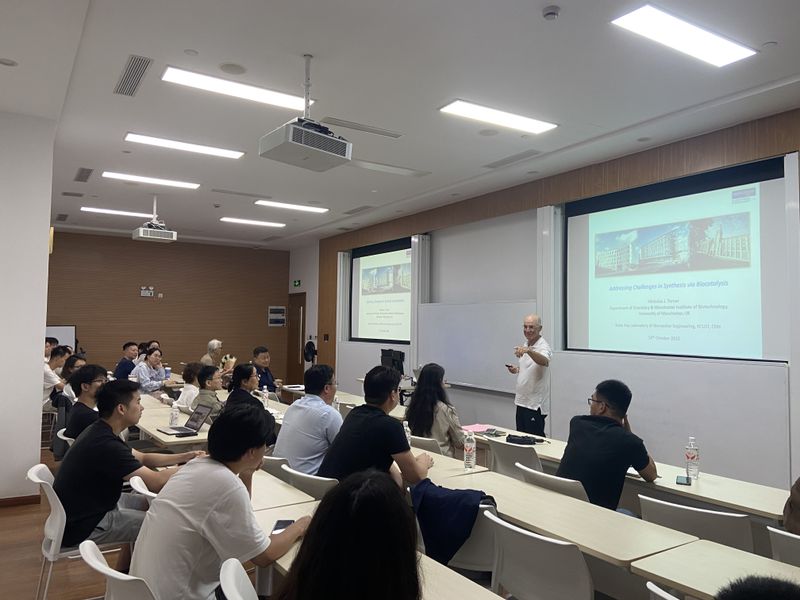 近日,英国皇家科学院院士、曼彻斯特大学教授Nicholas J. Turner应邀做客我校生物反应器工程全国重点实验室第48期“俊棠论坛”,并作了题为“Addressing Challenges in Synthesis via Biocatalysis”的学术报告。