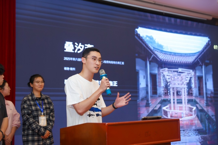 团队核心成员洪亮来自福建三明,在连续3届体验营中真正感受到了闽台文化的共融。从2020年加入团队初识闽台古厝的温度,到2024年以骨干身份带领小组完成融合传统与现代的木构作品,再到2025年作为负责人组织两岸学术交流、阐释聚落保护背后的文化认同意义,洪亮在一次次实践中不断深化认知——从初时的情感共鸣,走向协同创作的技艺探索,最终升华为对传承使命的自觉担当。
