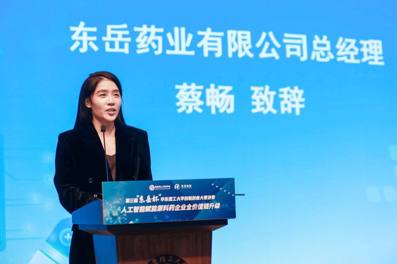 蔡畅表示,本届“东岳杯”大赛聚焦人工智能驱动原料药全价值链升级,搭建起校企协同、推动创新的重要平台。作为华东理工大学校友企业代表,东岳药业希望通过支持赛事回馈母校、履行社会责任,助力学子将前沿理念转化为产业解决方案。期待参赛团队勇于突破,以人工智能技术为医药行业注入新动能,共同探索产学研深度融合的发展路径。