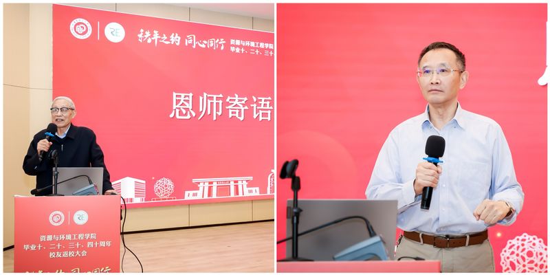 校友们共同观看了学校的宣传片,纷纷感慨母校的飞速发展和巨大变化,熟悉又陌生的画面也勾起了校友们对往昔青春岁月的无限回忆。煤912班陈惊春和环境工程011班伍安乐作为校友代表回顾了在华理美好的求学时光,分享了各自在工作岗位上的经历和收获,表达了对母校的感激之情以及对未来发展的美好祝愿,号召全体资环人心系学校和学院发展,共同为母校的发展贡献智慧和力量。