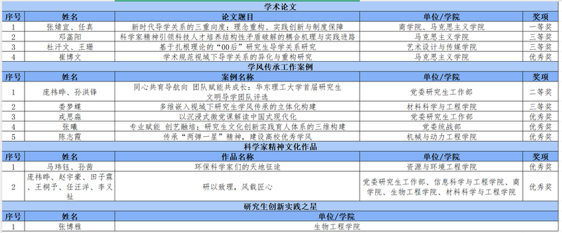 据悉,本次征稿活动旨在为深入贯彻落实习近平总书记关于科技创新、学风建设的重要论述和指示精神,落实立德树人根本任务,培育创新文化,弘扬科学家精神,涵养优良学风,推进教育、科技、人才“三位一体”协同融合发展,鼓励长三角科技工作者和研究生勇担科技创新重任。2025年长三角科学道德和学风建设论坛共收到41家高校和科研院所投稿作品992份。我校研究生院(党委研究生工作部)积极组织师生投稿并择优推荐参评,最终,经个人申报、学校推荐、专家评审和学术检测,共有4篇学术论文、5个工作案例、2部文化作品获奖,1人获评“研究生创新实践之星”荣誉称号。