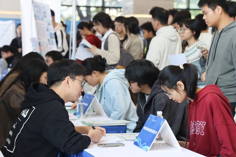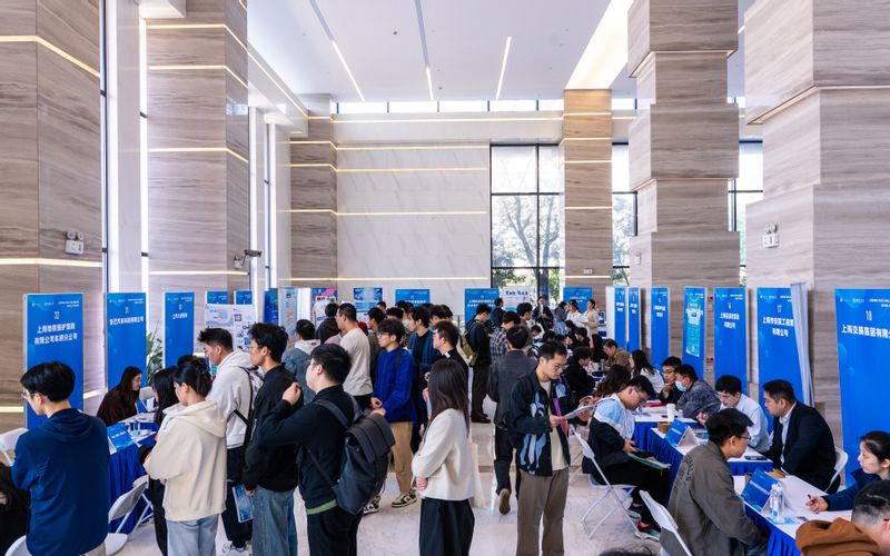 随后,华东理工大学国资专场招聘会在信息学院一楼大厅正式开始,40余家企业代表提供百余个就业岗位,近千名学生陆续到场咨询、投递简历,现场人头攒动、气氛热烈。上海市国资青联部分骨干委员还带来了老凤祥海派珐琅技艺、新锦江大酒店非遗上海酥饼、上药雷允上大健康等特色展位。