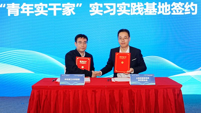 活动现场,我校团委与上海市国资青联共同签署“青年实干家”实习实践基地协议。上海市国资系统将每年为华理学子提供5至10家优秀国企单位,匹配实习岗位,助力华理学子高质量就业。