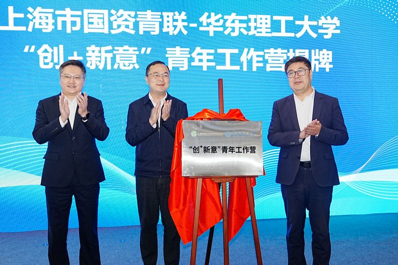 活动中,邬斌、梁波、沈海涛共同为上海市国资青联-华东理工大学“创+新意”青年工作营揭牌。
