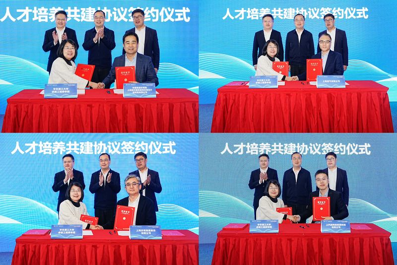 为有效整合校企资源优势,推动教育链、人才链与产业链、创新链有机衔接,为服务国家战略和产业发展锻造更多卓越工程师后备力量,我校卓越工程师学院与部分上海国资企业签署卓越工程人才共建协议。卓越工程师学院党委书记兼常务副院长张雪芹与华建集团上海现代建筑装饰环境设计研究院有限公司总经理施亮,申能集团上海燃气有限公司党委副书记、纪委书记、工会主席吴莹,城投集团上海环境集团党委副书记、纪委书记、工会主席孙嘉锋,上汽集团清陶动力科技(上海)有限公司副总工程师侯晓宇分别签署共建协议。