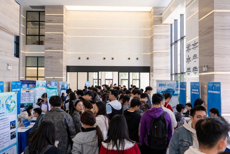 随后,华东理工大学国资专场招聘会在信息学院一楼大厅正式开始,40余家企业代表提供百余个就业岗位,近千名学生陆续到场咨询、投递简历,现场人头攒动、气氛热烈。上海市国资青联部分骨干委员还带来了老凤祥海派珐琅技艺、新锦江大酒店非遗上海酥饼、上药雷允上大健康等特色展位。