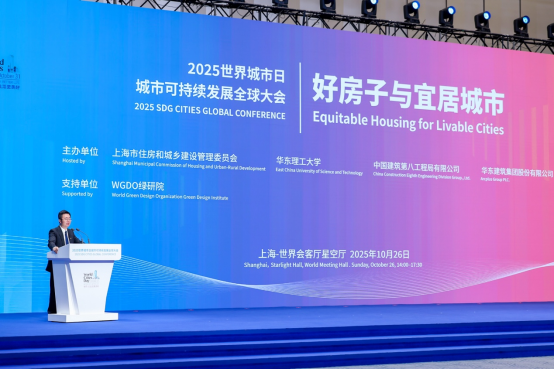 10月26日,2025世界城市日城市可持续发展全球大会“好房子与宜居城市”主题会议在世界会客厅星空厅拉开帷幕。会议由上海市住房和城乡建设管理委员会、华东理工大学、中国建筑第八工程局有限公司、华东建筑集团股份有限公司联合主办,联合国人居署支持,聚焦住房公平与城市宜居,以“新动能、新技术、新治理”为主题,探讨可持续包容性住房解决方案。来自国内外政府、高校、企业及国际组织的领导、专家和嘉宾齐聚一堂,共享全球城市发展智慧。