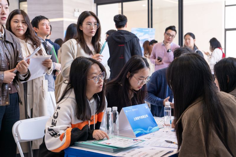 随后,华东理工大学国资专场招聘会在信息学院一楼大厅正式开始,40余家企业代表提供百余个就业岗位,近千名学生陆续到场咨询、投递简历,现场人头攒动、气氛热烈。上海市国资青联部分骨干委员还带来了老凤祥海派珐琅技艺、新锦江大酒店非遗上海酥饼、上药雷允上大健康等特色展位。