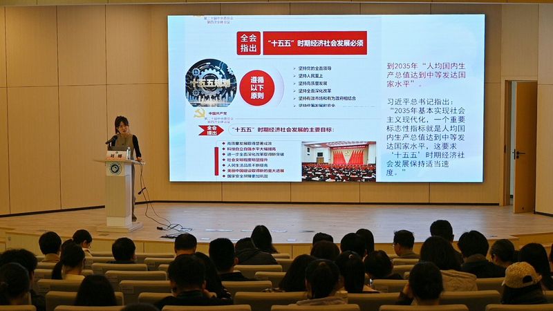 刘娜带领大家学习了党的二十届四中全会精神,并从“群众工作是中国共产党的看家本领”“习近平总书记关于做好群众工作的理论及实践”“新时代遵循规律练就群众工作本领”三个方面,介绍了群众工作的理论基础、历史传承、时代诉求,详细解读了新时代群众工作的主要规律、工作方法和能力要求等。她号召学院师生们在学习和实践中不断增强群众工作本领,掌握新时代做好群众工作的规律,努力成为群众工作的行家里手。