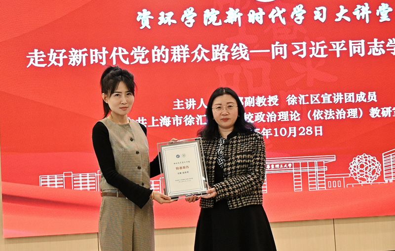 为深入学习贯彻党的二十届四中全会精神,锲而不舍落实中央八项规定精神,推进作风建设常态化长效化,深化师生的国情教育,10月28日下午,资源与环境工程学院组织开展“新时代学习大讲堂”报告会,特邀中共上海市徐汇区委党校副教授、徐汇区宣讲团成员刘娜作“走好新时代党的群众路线—向习近平同志学做群众工作”辅导报告。学院党委副书记、纪委书记陈雪莉主持报告会,学院党政领导、教职工和学生党员参加了此次活动。