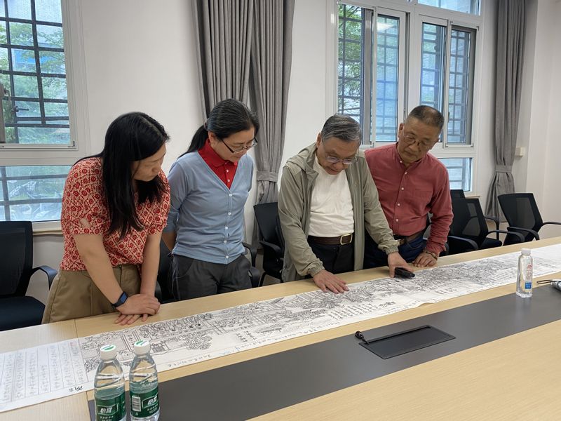 长卷由上海市非物质文化遗产连环画项目传承人罗希贤领衔创作。自2022年起,学校与罗希贤深度合作,创作校史人物系列连环画,已出版张江树、苏元复、琚定一、朱正华、张泽垚等5位先贤的画册。