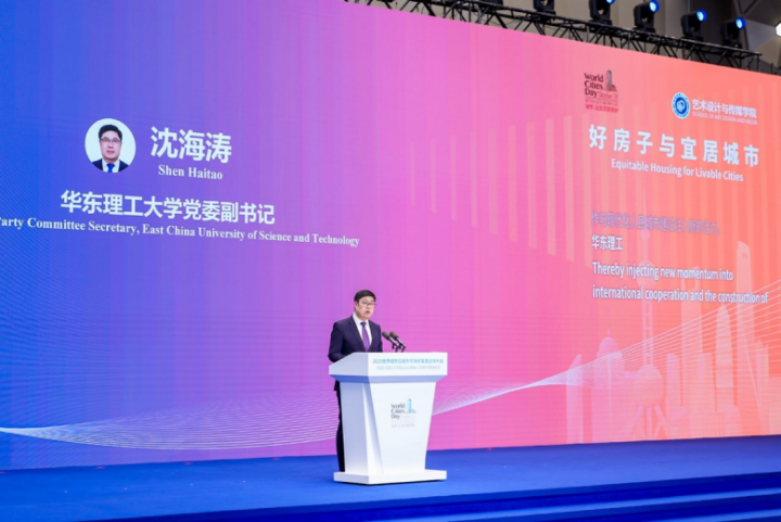 10月26日,以“创新发展,共建以人为本的智慧城市”为主题的2025世界城市日城市可持续发展全球大会在上海世界会客厅开幕。华东理工大学党委书记蒋传海受邀出席开幕式,代表学校推介“全球城市可持续发展项目——街区绿色设计国际标准”创新成果。