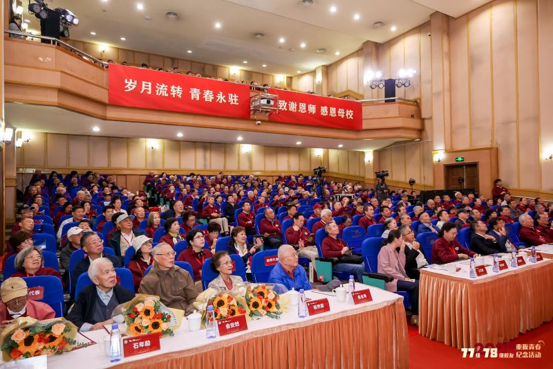 10月30日,77级、78级校友“重返青春”纪念活动在徐汇校区举行。500余名来自全球的校友跨越山海归来,与当年的老师和同学齐聚一堂,共忆青春岁月,共叙绵长情谊。我校抗771班校友、中国科学院院士李永舫,有782班校友、华东师范大学校长、中国工程院院士钱旭红等校友代表与会并发言,校党委书记蒋传海出席大会并讲话,副书记沈海涛、副校长阎海峰出席,大会由沈海涛主持。