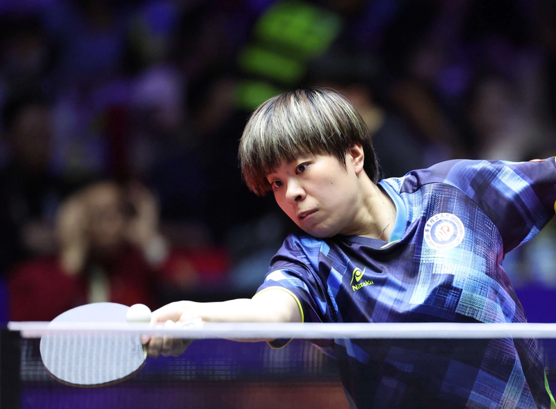 王艺迪(右)与张本美和激烈对战