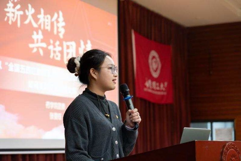 药学院团委副书记张旻钰从“全国五四红旗团支部”制药201支部的建设历程出发,围绕思想引领、组织建设、学术创新与服务育人,分享了“品牌有高度、帮扶有力度、服务有温度”的支部发展路径。