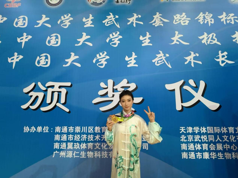我校高水平武术队在总教练石秀廷老师带领下,4名运动员王珺霖、于雯赫、王艺涵、徐嘉仪参加10个项目的角逐,获两金两银两铜。其中,队员王艺涵在太极器械、养生功法、八法五步太极拳项目中摘两金一银;王珺霖在太极器械、八卦掌、其他养生太极拳项目中获一银两铜。同时,石秀廷老师获“体育道德风尚奖教练员”称号,4名队员均获“体育道德风尚奖运动员”称号。
