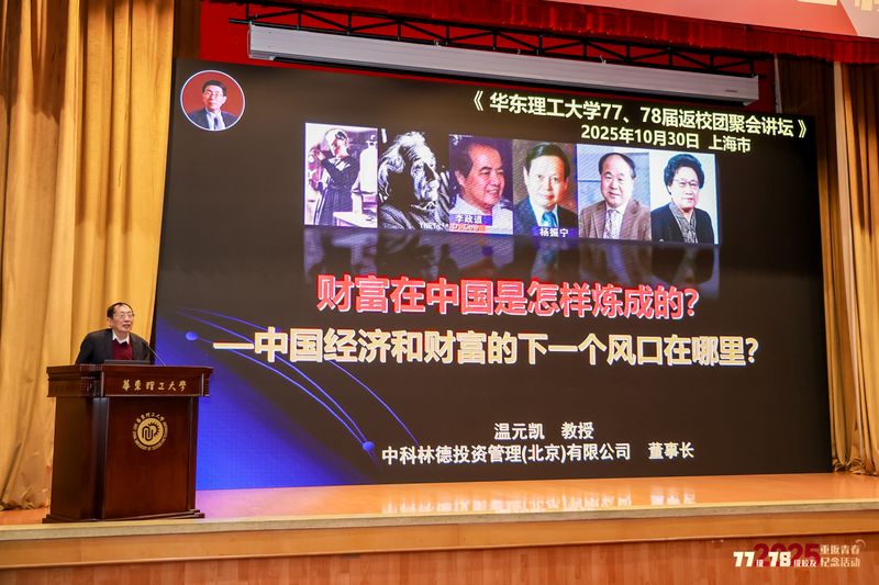 大会特别邀请中国著名经济学家温元凯教授作分享。作为1977年邓小平同志主持的科学和教育工作座谈会参与者,温元凯教授在八十年代,曾多次来华理为师生做报告。此次他以“中国经济和财富的下一个风口在哪里?”为题,解析时代趋势,其宏阔视野与深刻洞察赢得阵阵掌声。