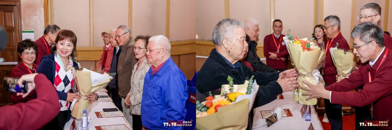 “桃李不言,下自成蹊”。大会现场举行校友代表向教师代表献花仪式,校友们向袁勤生、张嗣良、俞金寿等当年执教的老教师献上鲜花。