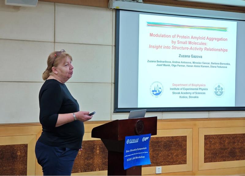 研讨会上,斯洛伐克科学院实验物理研究所所长Zuzana Gaová博士回顾了双方在生物医学领域长期以来的紧密合作与交流互访历程,并期待双方通过深化合作,开启相关领域发展新篇章。Zuzana Gaová博士基于“神经退行性疾病多靶点治疗的中药小分子发现和机制研究”的双边合作项目框架下的“小分子调节淀粉样蛋白聚集研究”作学术报告,系统阐述了小分子在抑制淀粉样蛋白纤维化中的机制与应用前景。