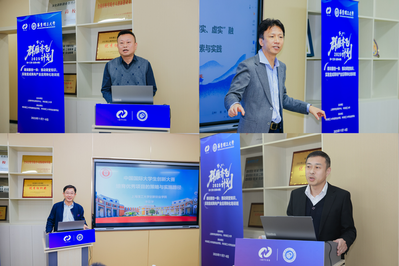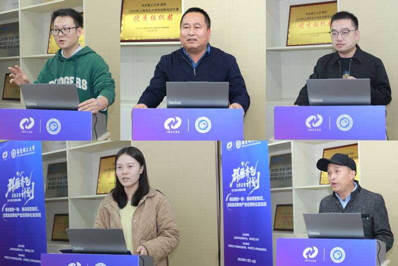 此次培训班以“以课导学,以训赋能,以赛推创,以孵落地”为主题,邀请了上海理工大学创新创业学院副院长李臣学,华东理工大学商管公司总经理殷伟、教务处副处长刘金库、机械实验教学中心主任吴清分别作主题报告。