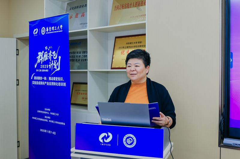 11月7日-8日,由上海市教育委员会指导,上海市学生事务中心和华东理工大学联合主办的2025年第十三期“群雁齐飞计划”——课训赛创一体:推动课堂知识、实验室成果向产业应用转化培训班在我校举办。华东理工大学党委常委、副校长王慧锋,上海市学生事务中心创新创业部部长姚栋华出席开班式并致辞,华东理工大学创新创业学院司忠业主持开班式及培训环节。