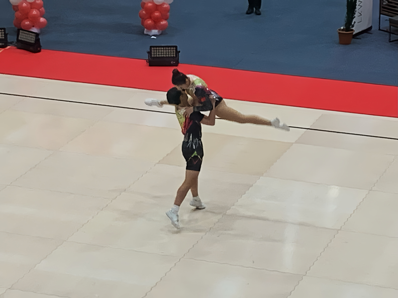 在成年组混合双人操项目中,王艺润与黎炫东从舒展连贯的难度技术动作,到精准同步的操化内容转换,全程节奏一致、协作流畅自然,获得该项目银牌。