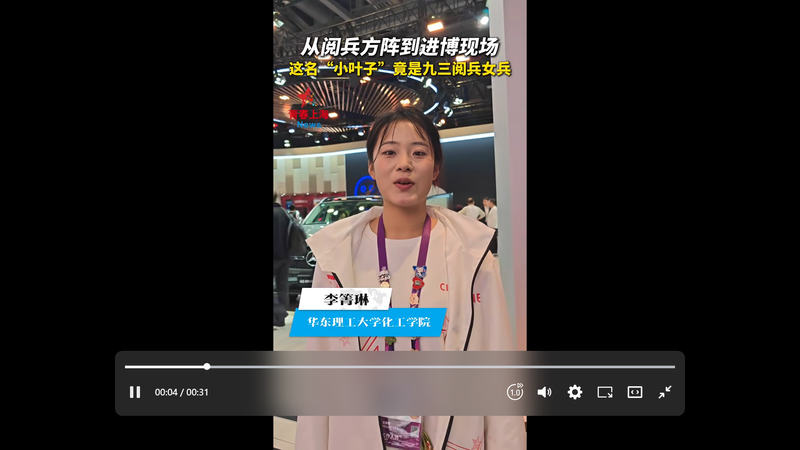 来自华东理工大学化工学院的李箐琳是一名特殊的“小叶子”——她不久前参加了纪念中国人民抗日战争暨世界反法西斯战争胜利80周年阅兵仪式,转身投入了进博会的志愿服务工作。(青年报·青春上海 刘昕璐)