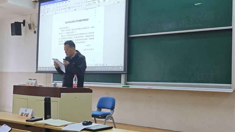 学习报告结束后,郭卫斌领学了习近平总书记给全国特岗教师代表的重要回信、给天津大学全体师生的重要回信和习近平总书记关于教育的重要论述,参会人员共同观看《教育家精神——心有大我、至诚报国》视频。
