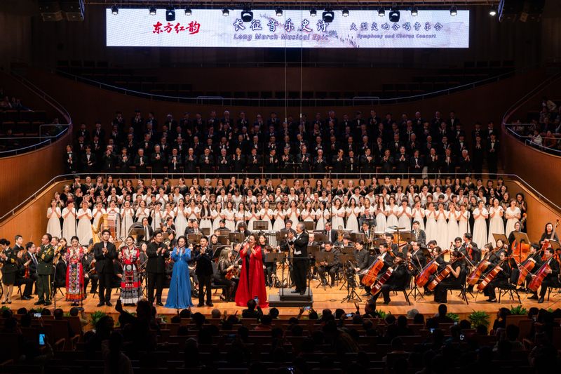 这部被誉为20世纪华人音乐经典的作品,由开国上将萧华作词,晨耕、唐诃、生茂、遇秋等作曲家谱曲。作品由《告别》《突破封锁线》《遵义会议放光辉》《四渡赤水出奇兵》《飞越大渡河》《过雪山草地》《到吴起镇》《祝捷》《报喜》《大会师》等十个部分组成。慷慨激昂的旋律和荡气回肠的歌声,生动再现了红军长征途中的经典历史场景,带领观众重回那段战火纷飞的峥嵘岁月。