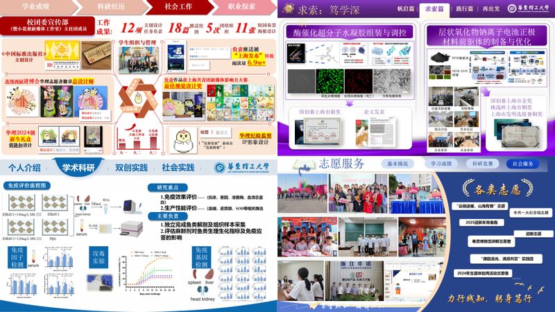 在答辩会中,24位来自各学院推荐的优秀学子围绕综合素养、专业学习、创新实践、服务奉献等方面进行了展示和分享。化学学院的董绎文、信息学院的龚梦佳、国卓学院的肖奕晨的学习成绩稳居专业榜首,多门课程满绩并斩获国家奖学金,外语学院的俞文迪跨界突破斩获全国职业规划大赛金奖,商学院的于泽宇深耕城市韧性研究,成果获政府部门采纳,他们彰显了华理学子勤学善思、追求卓越的优良学风。材料学院的李圳明获卓越工程师拔尖创新人才资助,生工学院的杨永康聚焦产业痛点研发核心设备,物理学院的曹文盛在高端芯片领域产出国际顶级成果,资环学院的林晓燕积极参与各类学科竞赛,他们生动展现了华理学子面向前沿、勇攀高峰的创新精神。艺术学院的顾佳琪牵头艺术党课工作,材料学院的陈雪晴、法学院的郭亦嘉带领班级屡获校级荣誉,药学院的朱俊杰首创班级公众号,化工学院的吴越致力于解决同学诉求,他们用热忱与坚守为集体发展注入强劲动力。社会学院的陈宝琪积极开展学生资助宣传工作,数学学院的吕嘉怡致力于教育帮扶相关活动,化学院的乔琦源、机动学院的郭俊召赴乡村播撒知识火种,商学院的张颖、化工学院的周威坚持在公益领域发光发热,资环学院的刘骥元聚焦环保实践和志愿服务,他们体现了华理学子扎根大地、服务社会的责任担当。信息学院的李佳强作为退役士兵积极科普国防知识和参军政策,体育学院的王艺涵作为大学生运动员积极传承校园龙狮文化,国卓学院的韩雨彤在跨文化交流中着力开拓国际视野,他们以青春行动诠释了深厚家国情怀。