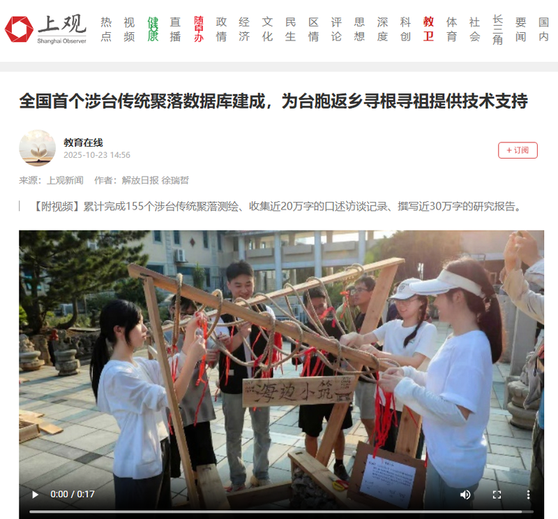 【解放·上观】全国首个涉台传统聚落数据库建成,为台胞返乡寻根寻祖提供技术支持