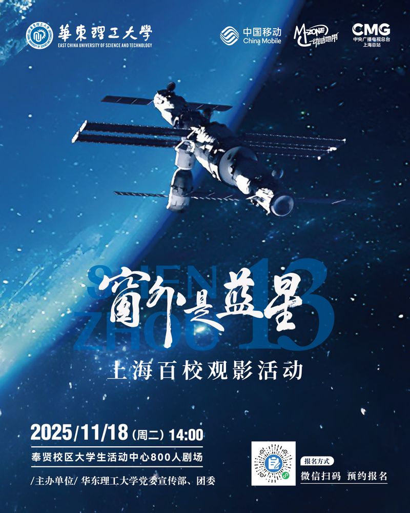 为深入学习贯彻党的二十届四中全会精神,弘扬载人航天精神,11月18日下午,由中央广播电视总台上海总站、中共上海市教育卫生工作委员会、上海市教育委员会与中国移动通信集团上海有限公司共同发起的《窗外是蓝星》上海百校观影活动走进学校奉贤校区大学生活动中心800人剧场。在这场光影交织的特别课堂里,师生以影像为媒,共上一堂走出地球的特殊“大思政课”,不断从“特别能吃苦、特别能战斗、特别能攻关、特别能奉献”的载人航天精神中汲取奋进力量。
