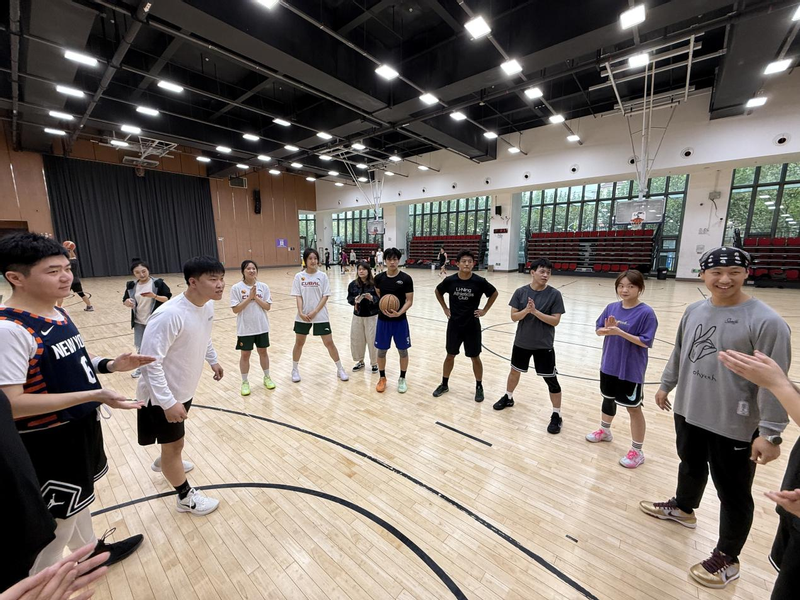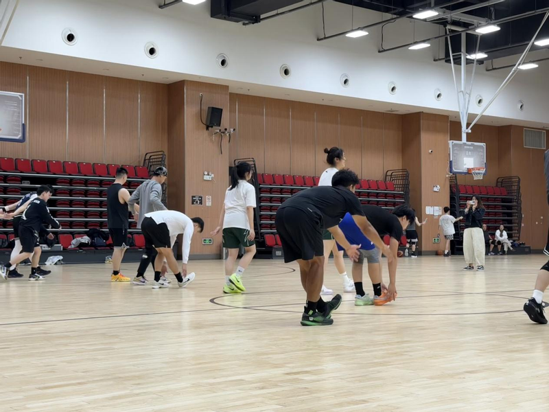 在正式比赛开始前,双方队员积极投入到热身环节,通过自由投篮练习、破冰介绍、热身拉伸等互动活动,迅速拉近了彼此距离,赛场气氛逐渐升温。华理篮球女队金安琪、陈思彤及多名研究生新生与滔搏鲁东沪上海篮球社团队员进行组队接触,运动中穿插的轻松交流,也让“比赛”从一开始就充满了友好的色彩。
