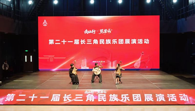 11月15日,我校大学生民乐团受邀参加“向山行 见紫云”第二十一届长三角民族乐团展演活动。本次活动在安徽合肥举办,汇聚了来自长三角多所高校与专业团队的优秀民族音乐作品。此次演出不仅展现了我校民乐团的艺术底蕴,也为推动民族音乐的传播与交流贡献力量。民乐团成员季泺辰、王思阳与王思远同学代表学校登台亮相,在安徽百戏城演绎弹拨乐重奏作品《品》。作品以灵动的节奏、富有灵气的旋律以及3位同学默契的配合赢得了评委与观众的热烈反响。