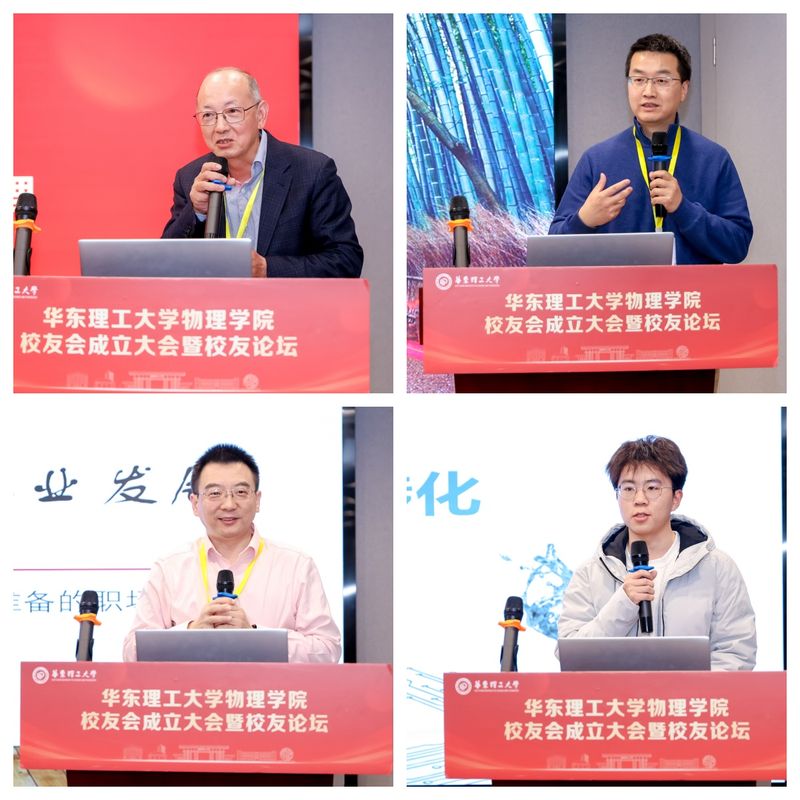 校友论坛环节由理事、80级校友、物理学院退休教师陆慧担任主持。名誉理事长、83级校友、浙江大立科技股份有限公司董事长兼总经理庞惠民作了题为“热爱专业,放飞梦想”的报告;理事、90级校友、联想集团基础设施事业部产品战略高级总监高健分享了“科技产业趋势”;理事、92级校友、马夸特电子科技(上海)有限公司上海厂厂长梅军围绕“物理人在制造业的职业发展”进行交流;21级校友、中国国际大学生创新大赛(2023)全国金奖团队成员季鑫介绍了“高性能电子墨水开发与转化”项目。与会校友纷纷表示,在母校打下的坚实专业基础为个人事业与人生发展奠定了重要根基。