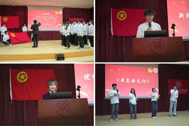 新团员代表陈卓在发言中,真切表达了加入团组织的激动心情与践行团员使命的坚定决心。优秀团员代表吴奕菲分享了在团组织中学习、成长、奉献的收获与感悟,展现了老团员的责任与风采,并对新团员寄予殷切期望。4位校园十佳歌手倾情演唱《最美的太阳》,展现青春风采。全体齐唱团歌《光荣啊,中国共青团》,激昂的歌声为活动画上圆满句号。