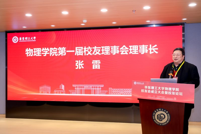 钮月萍作了物理学院发展情况报告和校友会成立筹备情况报告。大会审议并通过了《华东理工大学物理学院校友会章程》及理事会选举办法,选举产生了第一届校友理事会,马玲玲、仇建荣、任麒等26人当选为理事。第一届理事会选举上海张江高科技园区置业有限公司总经理张雷担任理事长,郑致刚为副理事长,张堃为秘书长。第一届理事会聘任浙江大立科技股份有限公司董事长兼总经理庞惠民为名誉理事长。