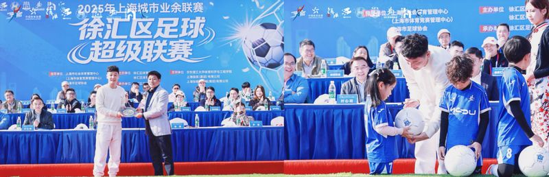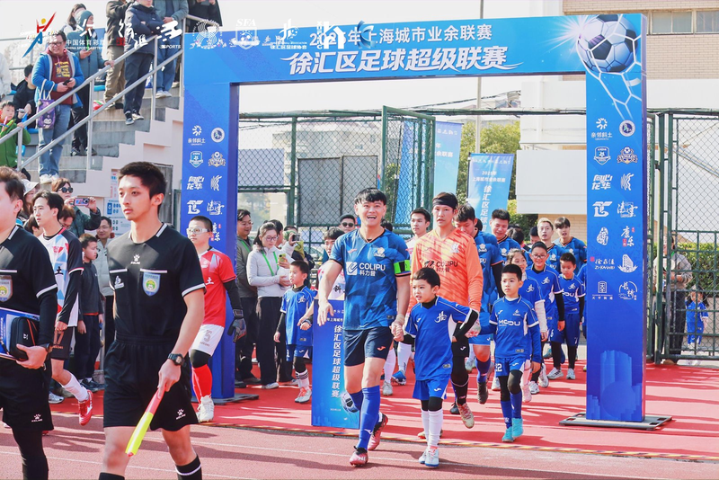 中国国家男子足球队队长武磊作为赛事形象大使亮相,从徐汇区足球协会主席罗俊手中接过铭牌。他与小球童亲切互动,并勉励全体运动员“赛出风格、赛出水平”,随后宣布联赛开幕。