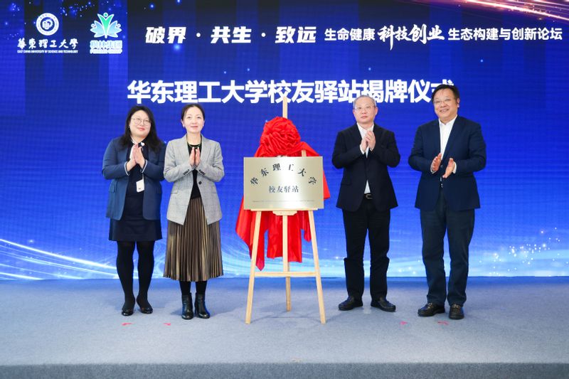 在论坛现场,华东理工大学校友会与枫林集团签署合作协议,并共同为“华东理工大学校友驿站”揭牌。校友与发展联络处处长王芝眉与黄立波代表双方签约,标志着校地合作迈向“创新链、产业链、资金链、人才链”深度融合的新阶段,将为校友创新创业提供更优质平台。