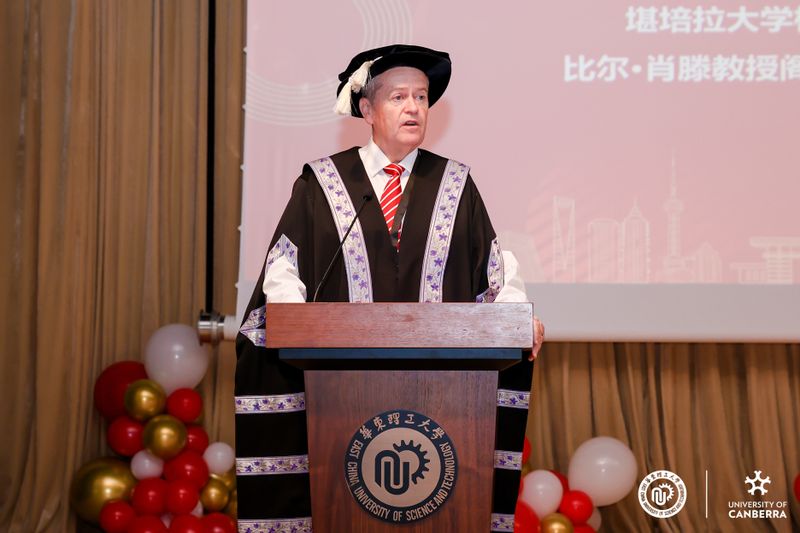 图片说明:堪培拉大学校长比尔·肖滕教授致辞