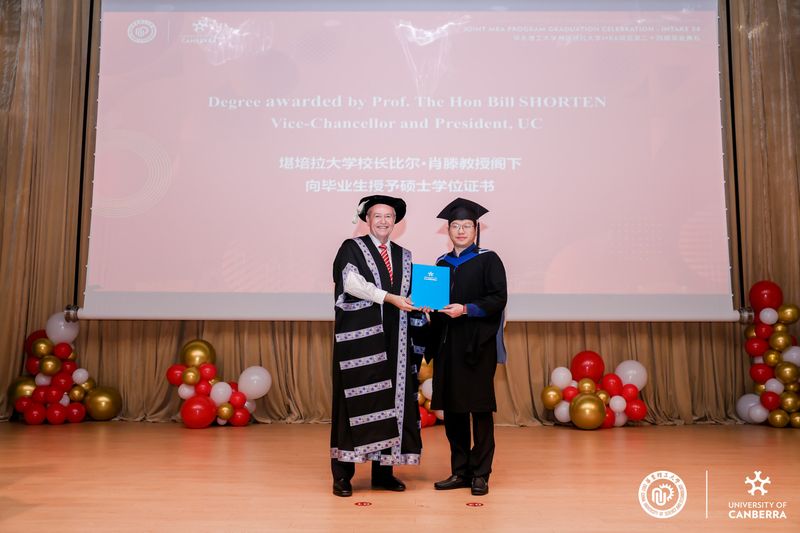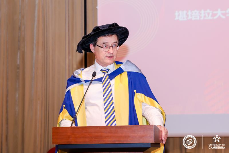 比尔·肖滕教授在致辞中表示,本次毕业典礼恰逢两校合作开办MBA项目25周年,具有十分特别的纪念意义。堪培拉大学将持续以高质量的教学与应用研究深化与各行业的合作,助力毕业生开启充实而有意义的职业生涯。他期待毕业生积极融入两校构建的全球校友网络,与来自中澳两国商界、政界及社区的杰出领袖携手同行,运用所学知识与技能实现个人价值、贡献社会发展。