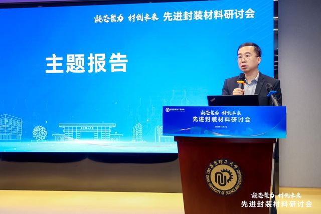 主题报告环节由材料学院院长杜建忠主持。中科院上海微系统与信息技术研究所研究员肖克来提、电子科技大学产业教授张康、毅达资本投资总监范辰分别以“先进封装技术发展趋势和关键材料”“半导体封装材料概览”“先进封装市场机会简析”为题作主题报告。