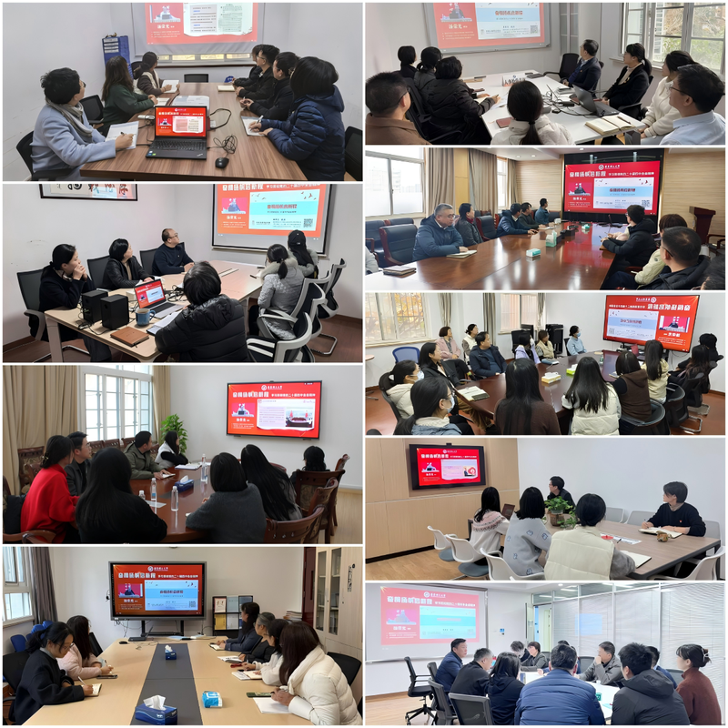 为确保学习全面覆盖、纵深推进、取得实效,此次学习沿用线上线下相结合、场内场外联动直播的集体学习形式,覆盖机关党员、干部、教职工全体。机关党支部在各单位会议室组织教职工集中收看学习。