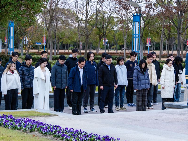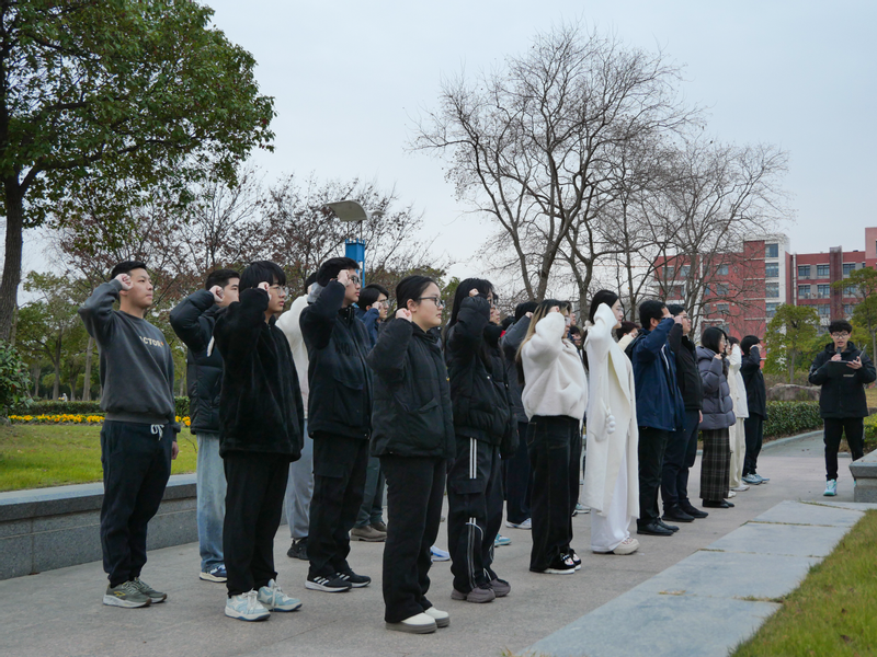 升旗仪式后,全体师生肃立垂首,为南京大屠杀中遇难的30多万同胞、为所有在民族解放与复兴道路上英勇献身的先烈们默哀一分钟。现场寂静无声,唯有寒风低吟,仿佛在诉说着那段不能忘却的历史,每一秒的静默,都承载着对逝去生命的深切缅怀、对峥嵘历史的深深敬畏、对和平岁月的格外珍视。
