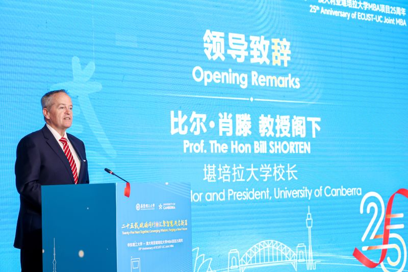 12月7日,华东理工大学-堪培拉大学MBA项目(以下简称“中澳MBA项目”)25周年庆祝活动在上海举行。活动以“二十五载砥砺同行 汇聚智慧共启新篇”为主题,华东理工大学校长轩福贞、堪培拉大学校长比尔·肖滕、澳大利亚驻华使馆公使兼副馆长费致远出席活动并致辞。华东理工大学副校长阎海峰主持活动。两校领导、教师代表、各界嘉宾以及校友代表等齐聚一堂,共叙合作情谊,共话未来发展。