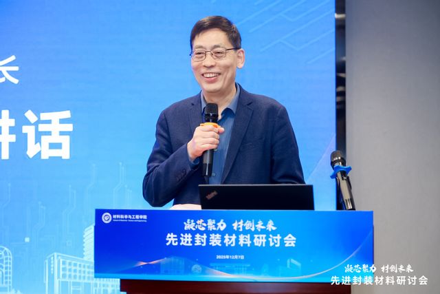 主题报告环节由材料学院院长杜建忠主持。中科院上海微系统与信息技术研究所研究员肖克来提、电子科技大学产业教授张康、毅达资本投资总监范辰分别以“先进封装技术发展趋势和关键材料”“半导体封装材料概览”“先进封装市场机会简析”为题作主题报告。