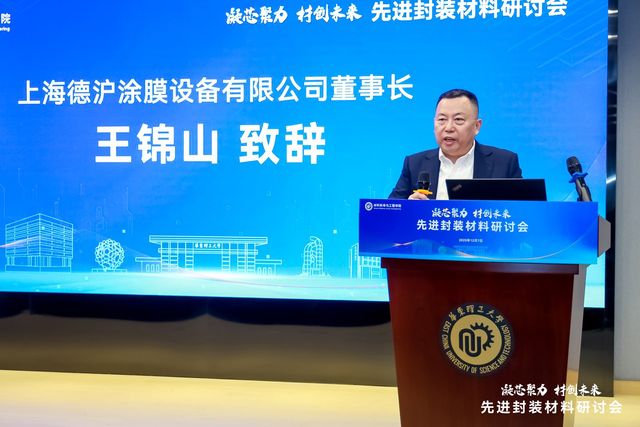 近日,“凝芯聚力 材创未来”先进封装材料研讨会在学校顺利召开,副校长李春忠出席会议并讲话。我校校友、上海德沪涂膜设备有限公司董事长王锦山应邀出席会议。校内外相关领域8位科研院所和企业专家学者,130余名师生参加研讨会。开幕式由材料学院党委书记袁媛主持。