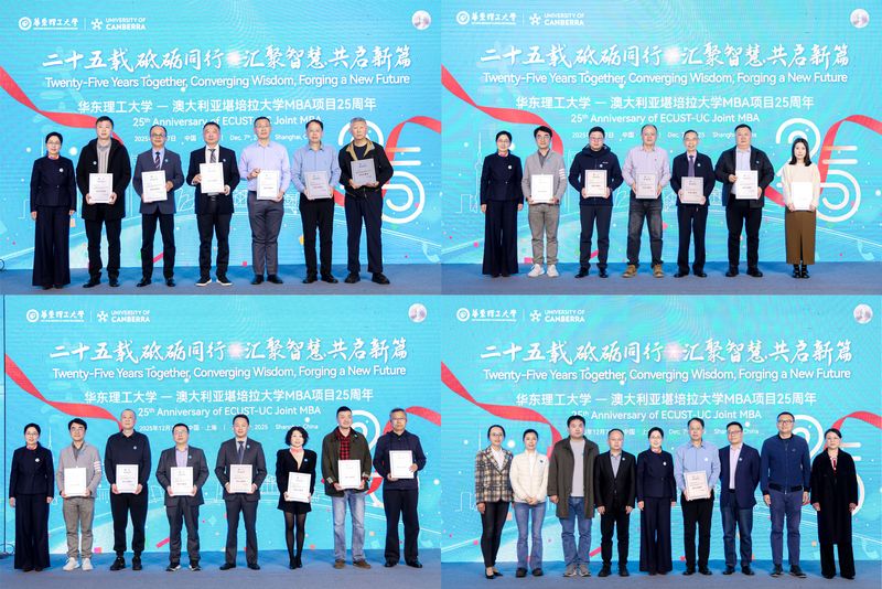 本次中澳MBA项目25周年庆祝活动全面回顾了项目发展历程与育人成果,展现了中澳双方在教育合作领域的深厚积累。站在新的起点上,华东理工大学与堪培拉大学将继续携手同行,推动国际合作办学不断迈向更高水平,为新时代经济社会发展培养更多具有全球竞争力的管理人才。