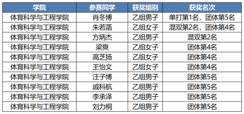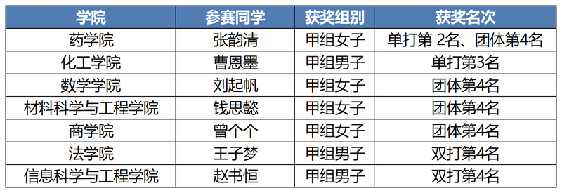 阳光组(甲)延续强势,张韵清获阳光组(甲)女单第二名,曹恩墨获阳光组(甲)男单第三名,赵书恒、王子梦获阳光组(甲)男子双打第四名。