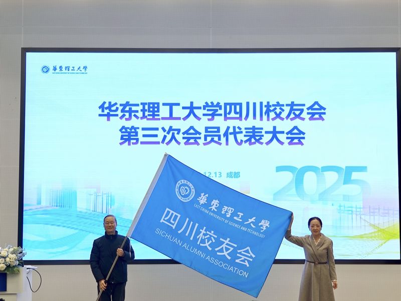 校友与发展联络处处长、校友总会秘书长王芝眉为四川校友会授旗。华东理工大学重庆校友会会长况景文、复旦大学四川校友会会长蒋华平先后登台发言,对四川校友会顺利换届表示祝贺,并期待加强跨区域、跨院校校友组织之间的交流协作,推动资源共享与事业共赢。